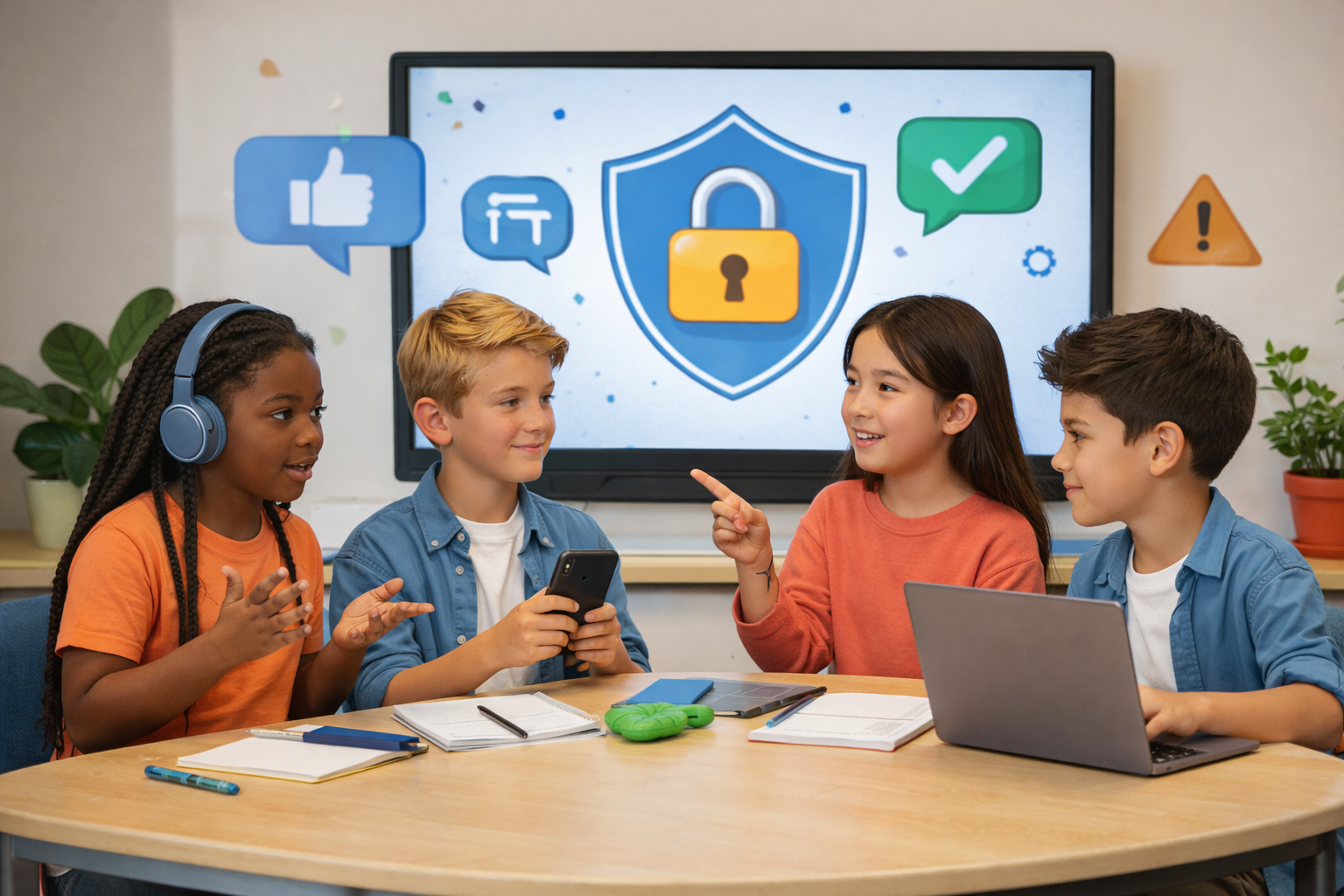 소셜 미디어 예절, 개인정보 보호, 건강한 온라인 소통, 그리고 온라인 콘텐츠를 비판적으로 이해하고 판단하는 능력을 함께 기릅니다.